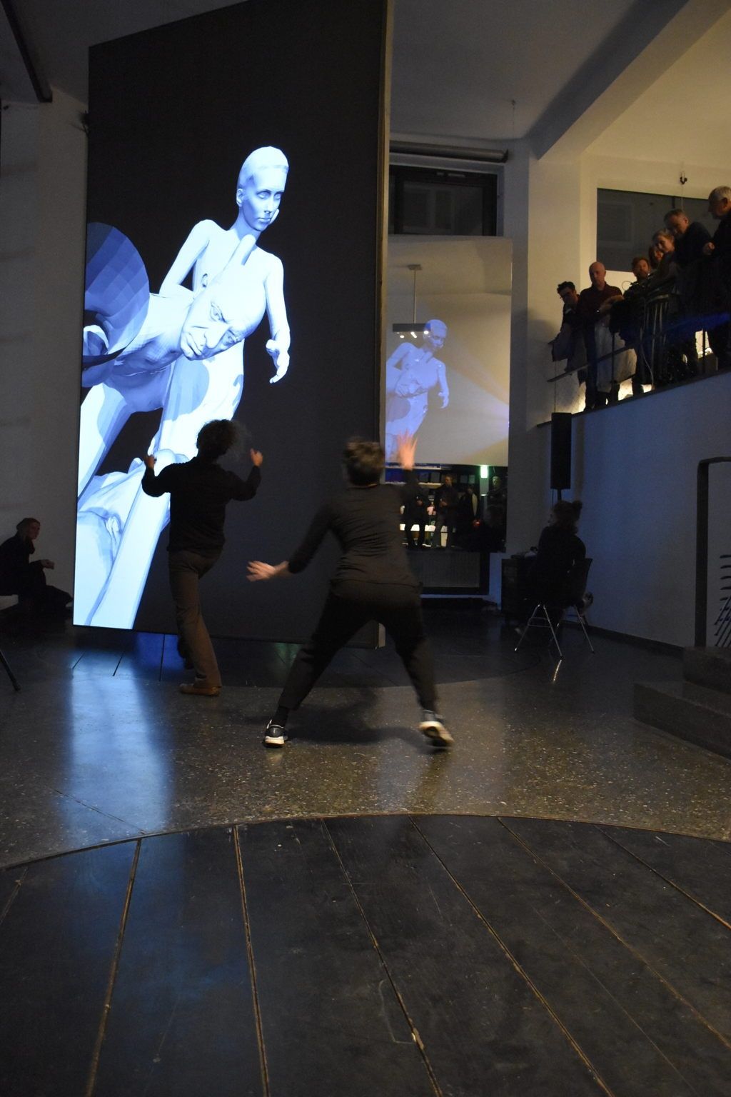 Die Ausstellung AND präsentiert zwei unabhängig voneinander konzipierte, interaktive Installationen, die sich an der Schnittstelle zwischen virtueller und physischer Raumproduktion bewegen. Gezeigt wird die Arbeit "Head in a Cloud" der ArchitektInnen Valerie Messini und Damjan Minovski (2MVD) sowie das künstlerische Forschungsprojekt INTRA SPACE rund um das interdisziplinäre Team von und mit Christina Jauernik und Wolfgang Tschapeller. Im Zentrum beider Projekte stehen Sinneserfahrungen, mittels derer virtuelle Welten als interaktive Wahrnehmungsräume für den menschlichen Körper in Echtzeit erfahrbar gemacht werden. Der schon seit den 1960er Jahren thematisierte Aufbruch in die Virtualität wird mit modernen technologischen Mitteln umgesetzt. Somit geben die Arbeiten auch Einblick in aktuelle, experimentelle architektonische Forschungs- und Entwurfsprozesse.