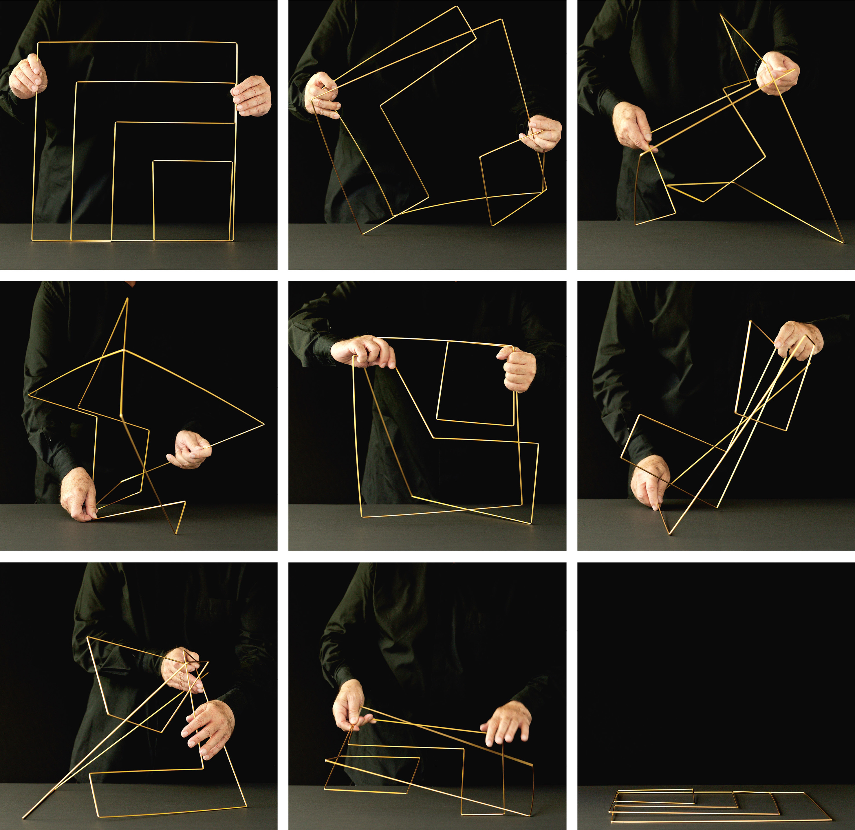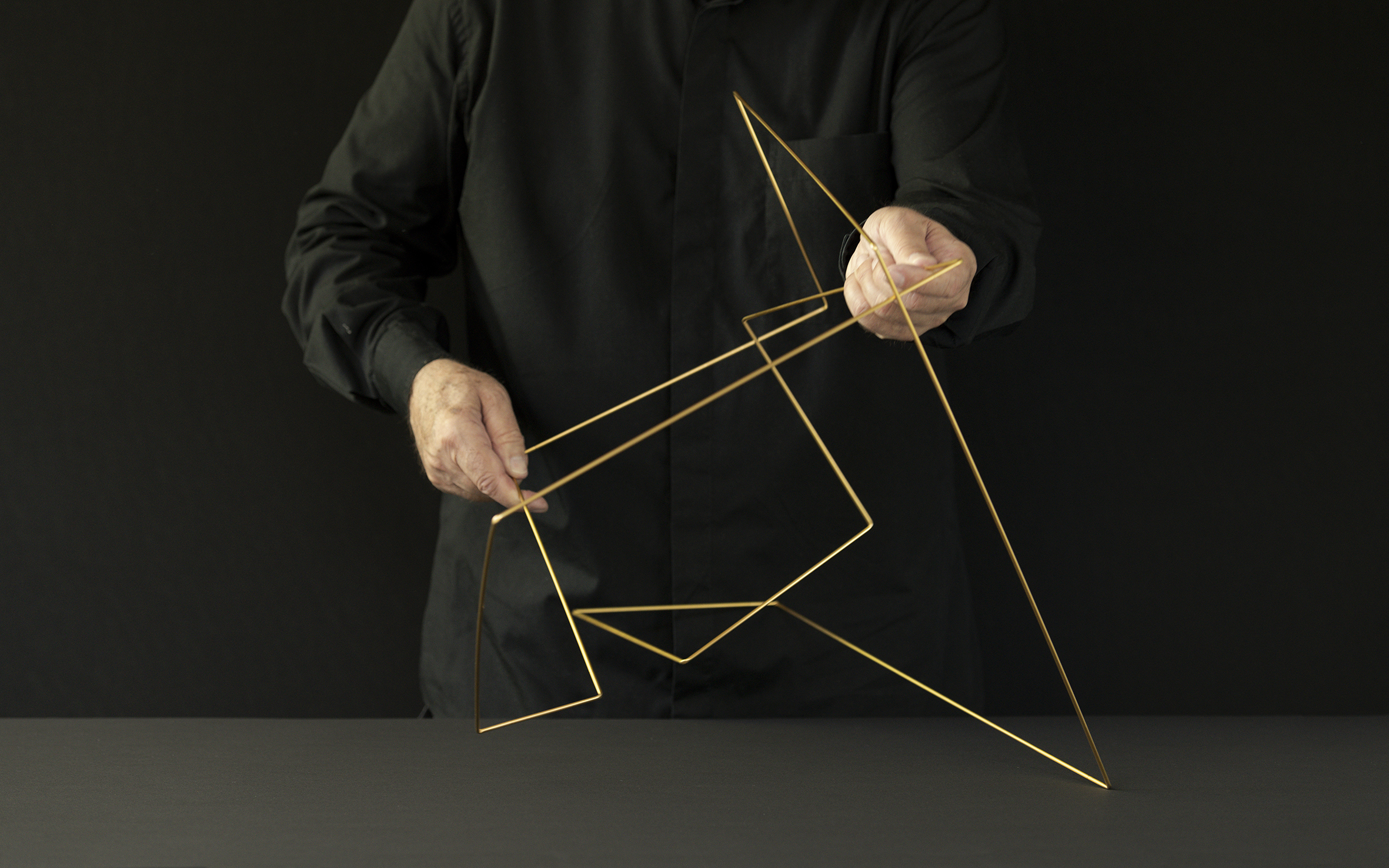 Parallel zu "No Name Design" zeigt Franco Clivio seine "Manifolds" – kinematische Objekte aus geometrischen Linien- und Flächengefügen mit raumgreifendem Ausdehnungspotenzial.