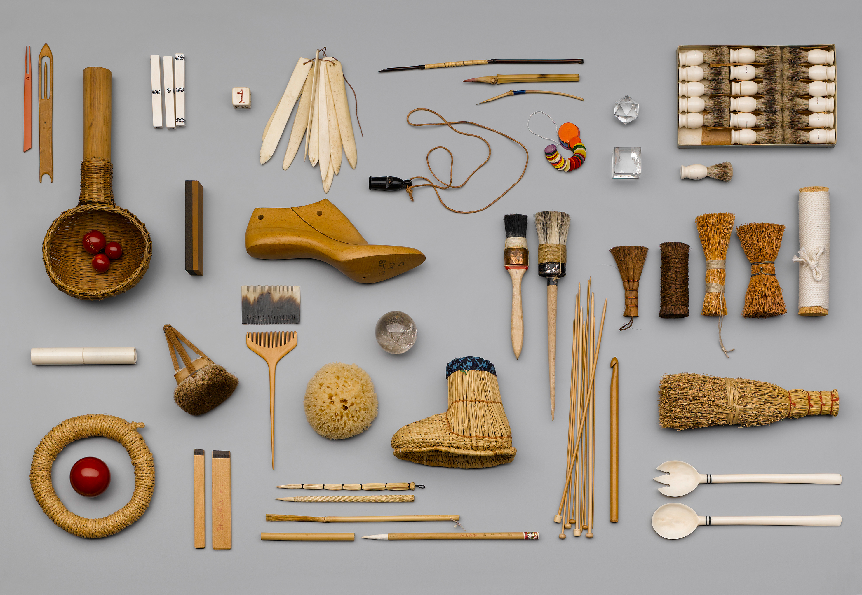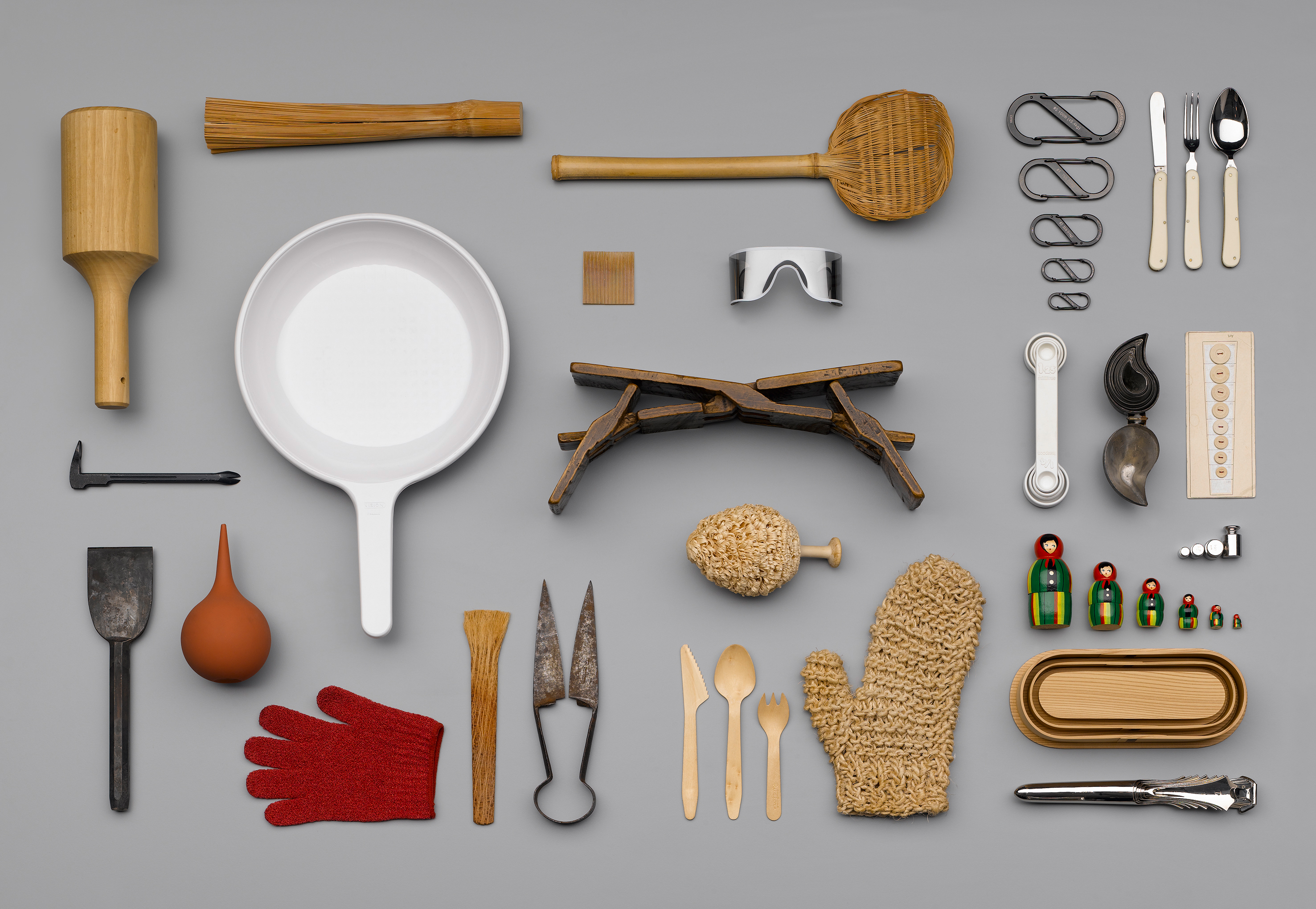 Die Ausstellung „No Name Design“ ist eine Hommage an diese auf den ersten Blick unscheinbaren Gegenstände, die weder blenden noch verführen wollen. Geordnet nach Funktionen, Typologien, Materialien oder formalen Kriterien werden über 1.000 Alltagsobjekte wie Klappmesser, Scheren, Brillen, Bürsten, Greifwerkzeuge oder Messinstrumente präsentiert, die dazu dienen, unser Leben angenehmer zu gestalten.