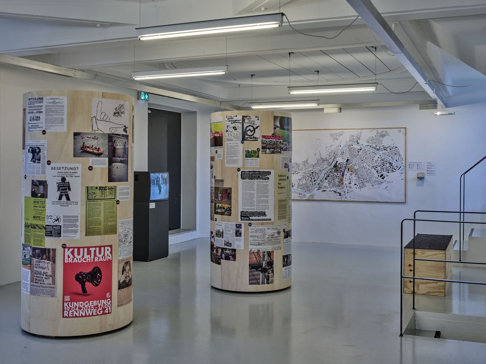 Anlässlich von 50 Jahre DOWAS (Durchgangsort für Wohnungs- und Arbeitssuchende) widmet sich die Ausstellung „geld . macht . raum“ den komplexen Problemstellungen einer Ökonomie des Wohnens anhand von Hintergrundinformationen, Fallbeispielen, Videos und künstlerischen Arbeiten.