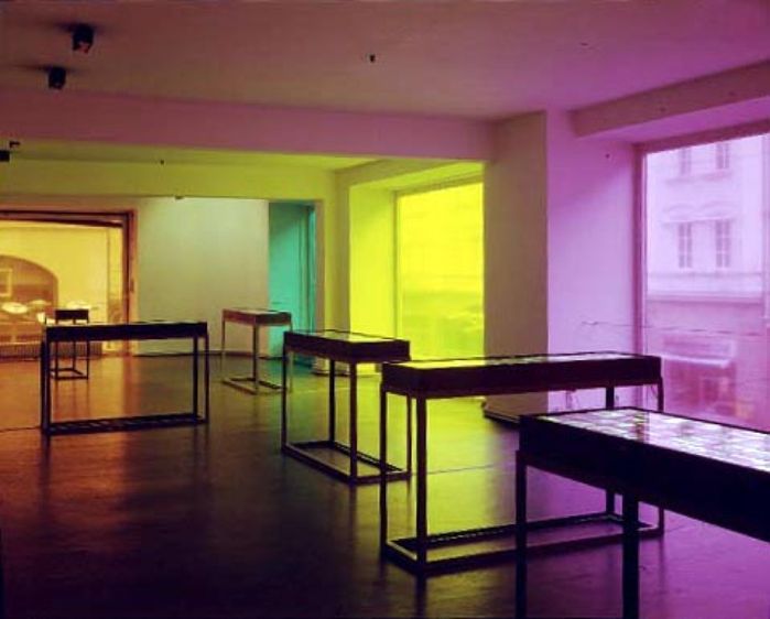 Mittels unzähliger Diapositive von Farbkonzepten anonymer Bars und Landstriche und seiner parallel dazu entwickelten „Stadtporträts“, die über die Berechnung eines Mittelwerts die Farbpalette einer Stadt wiedergeben, zeigt die Ausstellung das Ergebnis dieser jahrelangen Sammlung und Archivierung.