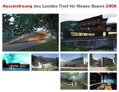 Eine Dokumentation sämtlicher bei der „Auszeichnung des Landes Tirol für Neues Bauen 2008“ prämierter Bauten. Innsbruck 2008, 24 Seiten, zahlreiche Farbabbildungen, 21 x 29,7 cm; Preis: gratis (Portospesen)
