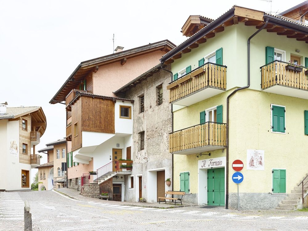 Der Südtiroler Künstler Walter Niedermayr – international bekannt für seine fotografischen Untersuchungen von Raum als von Menschen besetzte und gestaltete Realität – beschäftigt sich seit vielen Jahren mit dieser spezifischen Baukultur im Fleimstal. Über sieben Jahre lang fotografierte er in den elf Gemeinden, machte an die 10.000 Recherchefotos und auf deren Basis fokussiert bestimmte Bilder, führte Gespräche mit der Bevölkerung und las sich in die Fachliteratur über die umfassende Geschichte des Tales ein. Er lebte sich über wissenschaftliche Texte, die direkte räumliche Erfahrung bei seinen zahllosen Besuchen und vor allem durch die persönlichen Erzählungen der „Einheimischen“ in das Thema ein, konstruierte daraus seinen distanzierten, aber subjektiv gerichteten Blick und analysierte fotografisch die vorhandenen Eigenarten der Raum- und Gebäudestrukturen. Sein Interesse richtet sich auch auf den ungeschminkten Alltag, auf Gärten und Straßen, Durch- und Übergänge, Stiegen und Details, alte und neue Bausubstanz, vor allem aber die dörflichen Ensembles mit ihren historischen Schichten und aktuellen Überformungen.
