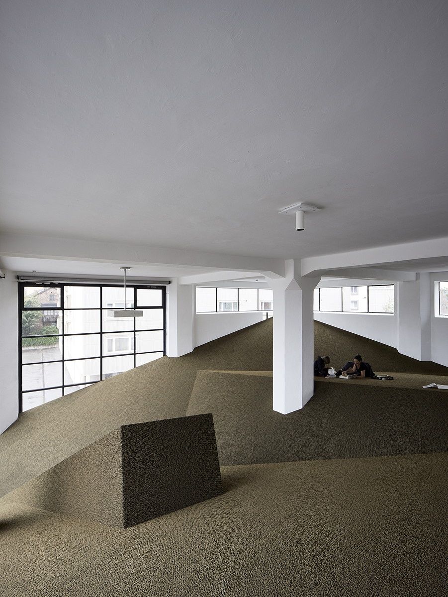 • Blick in die Ausstellung „Snøhetta: Relations“ im aut mit der von Snøhetta realisierten ­„Sozialen Landschaft“