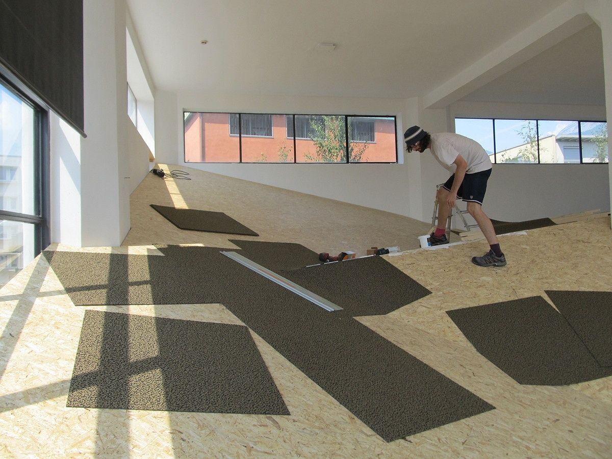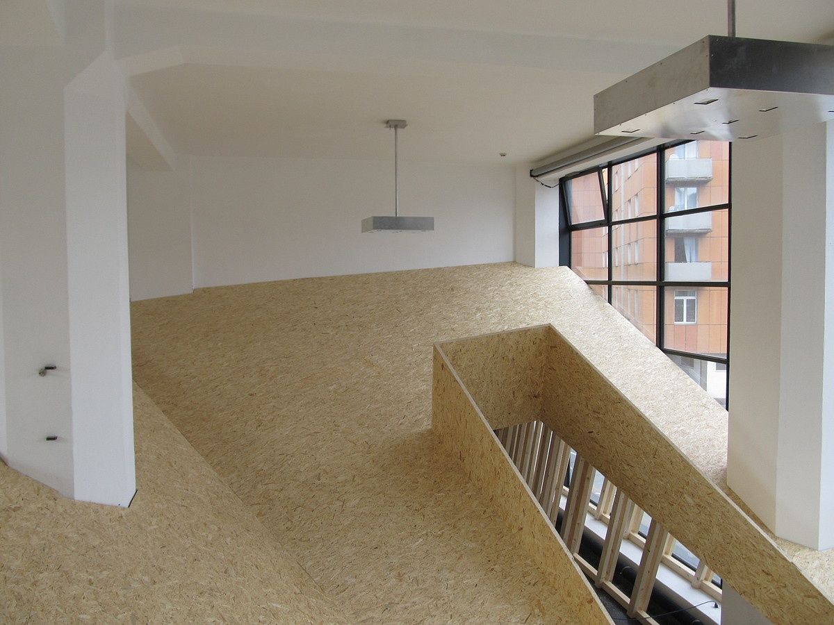 Als zentrales Element wird eine "soziale Landschaft" gebaut, auf der man liegen, sitzen und gehen kann, die zu einer neuen Art der Raumwahrnehmung animieren will oder zum Picknicken einlädt.