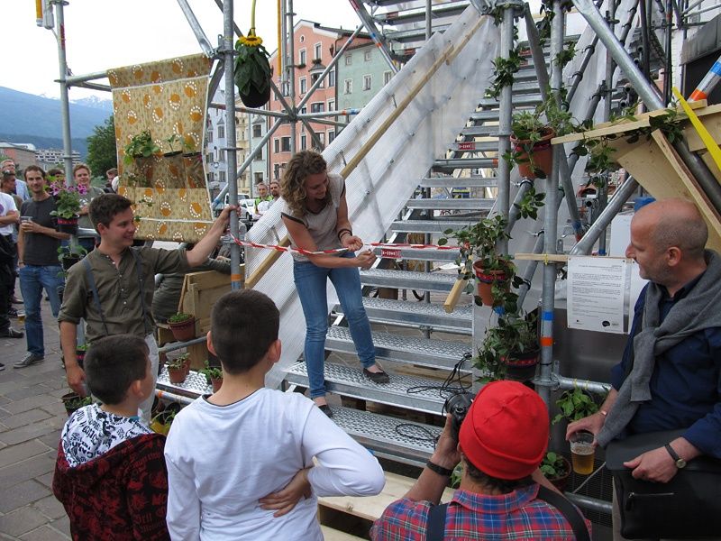 In Tirol wurde anlässlich der Architekturtage 2012 wieder gebaut! Dem Thema "anders als geWohnt" entsprechend richtete die Tortenwerkstatt – ein Kollektiv Innsbrucker Architekturstudierender – eine "stattSTUBE" ein. Ein bewohnbares, öffentliches Objekt, in dem man sich mit FreundInnen treffen, die Mittagspause verbringen, Essen, Arbeiten oder einfach nur sein kann.