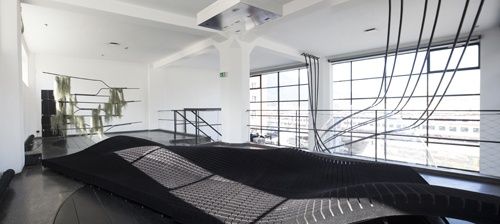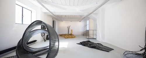 Mit der Ausstellung im aut wurde ihnen die Möglichkeit geboten, nicht nur autonome Arbeiten zu zeigen, sondern gemeinsam Objekte zu erarbeiten, die die Leistungsfähigkeit der jeweils spezifischen Materialien – der Pneu und das sogenannte splineTEX – verdeutlichen und das konstruktive wie gestalterische Potenzial aufzeigen, das in der Kombination dieser beiden "Werkstoffe" liegt.