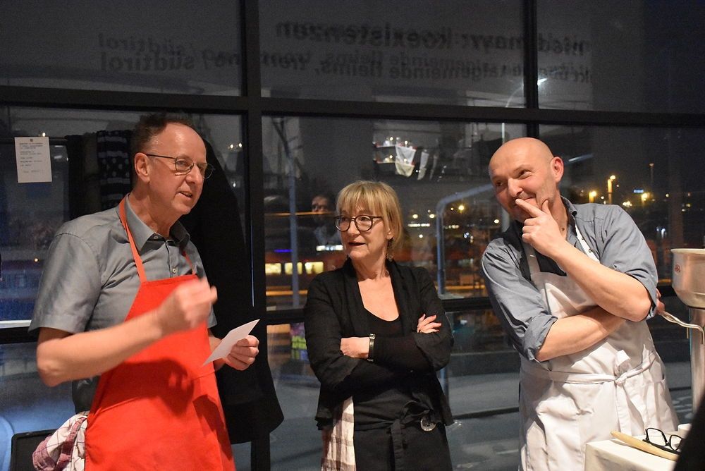 Einmal im Jahr lädt das aut all jene zu einem gemeinsamen Abendessen ein, die im abgelaufenen Jahr das Programm ideel, materiell oder finanziell unterstützt haben. Diese ungezwungenen Abende werden lukullisch von Mitgliedern oder Freunden des aut gestaltet, in diesem Jahr wieder vom bewährten Team Renate Benedikter-Fuchs, Erich Wucherer und Mario Ramoni, unterstützt von Martin Both und Eva Brenner.