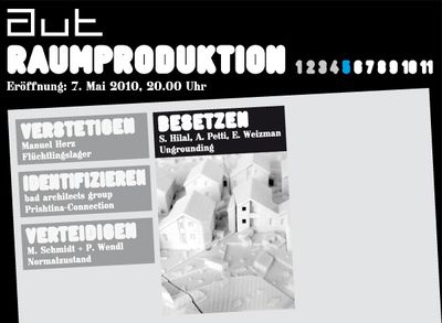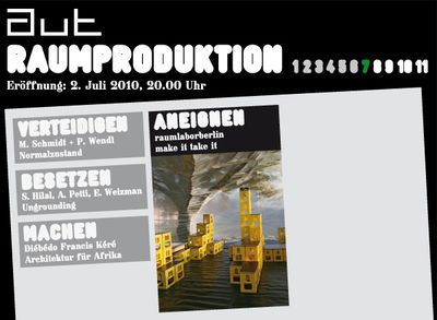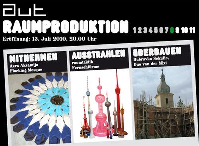 Mitnehmen, überbauen, ausstrahlen – mit drei Verben und vier Ausstellungsteilen setzt sich die über das gesamte Jahr 2010 gezeigte, von raumtaktik kuratierte aut.raumproduktion fort