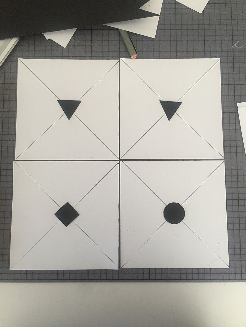 Dass der eigentliche Leuchtenkörper, der mit seiner dreiteiligen Glashaltekonstruktion um 60° zur Dreiecksplatte verdreht aufgehängt ist, eine zusätzliche Begründung für diese Aufhängungsart gewesen sein könnte, ist ebenso denkbar, wie die Aufgabe, eben drei Leuchten aufhängen zu müssen. Das Dreieck erlaubt jede Leuchte leicht verdreht aufzuhängen, wodurch eine noch deutlichere Unabhängigkeit der beiden geometrischen Systeme erzielt wird.