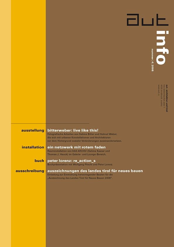 Die Programmzeitschrift von aut. architektur und tirol (Juni – September 2006)