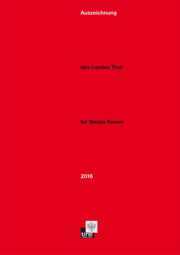 In der Broschüre „Auszeichnung des Landes Tirol für Neues Bauen 2016“ werden die ausgezeichneten Bauten umfassend vorgestellt und von den Jurymitgliedern kommentiert, die nominierten Projekte gezeigt sowie sämtliche Einreichungen genannt.