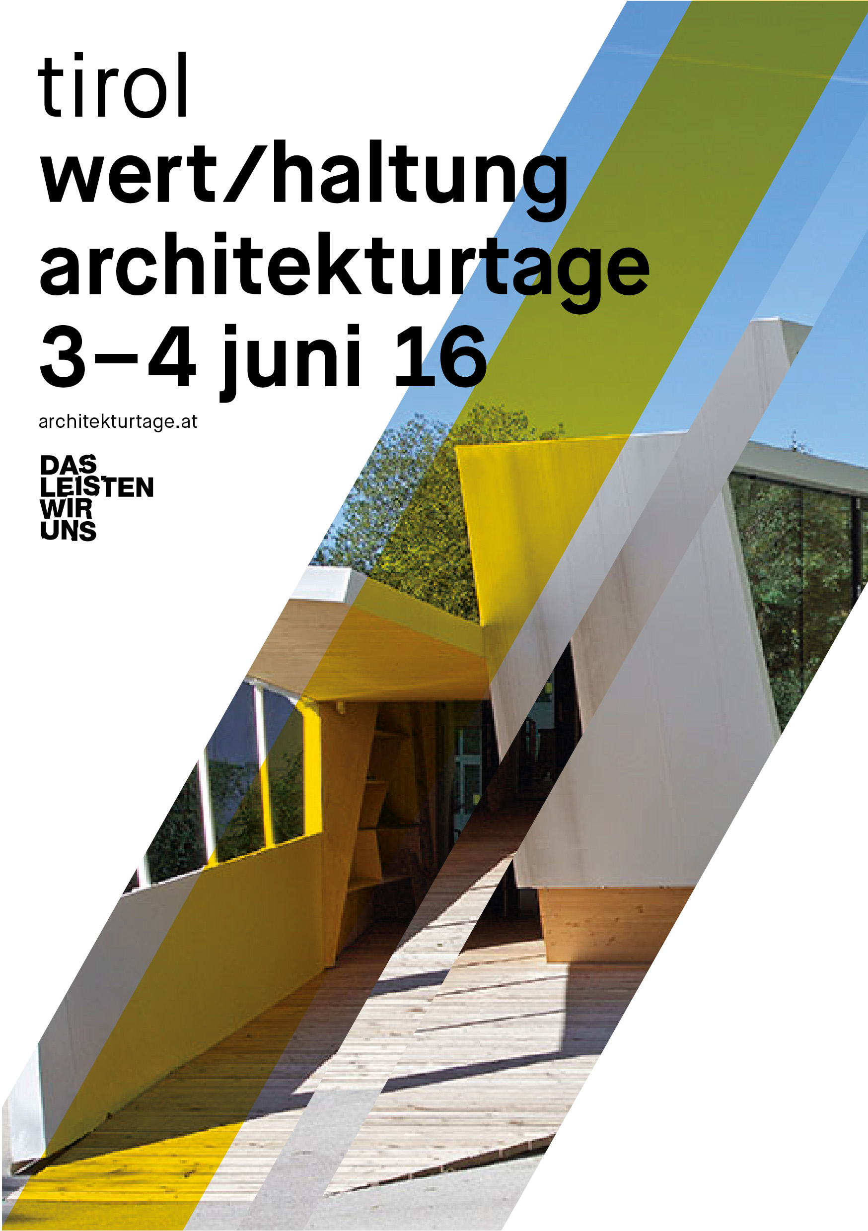 Soweit nicht anders angegeben kann das hier zur Verfügung gestellt Bildmaterial im Rahmen der Berichterstattung über die Veranstaltungen im Rahmen der „Architekturtage 2016: wert/haltung“ sowie unter Anführung der entsprechenden Bildnachweise kostenfrei verwendet werden.