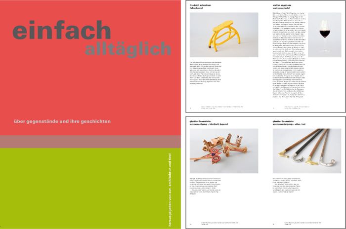 Mit der zur Finissage erschienenen Publikation "einfach alltäglich" wird dieses Panoptikum aus Alltagsgegenständen einer interessierten Leserschaft zugänglich gemacht. Wurden die Objekte in der Ausstellung soweit wie möglich nach Themen geordnet präsentiert, so bringt die "pragmatische", alphabetische Sortierung nach den Nachnamen der TeilnehmerInnen in der Publikation eine neue, "zufällige" Zusammenstellung der Gegenstände mit sich und damit eine andere dialogische Lesemöglichkeit.