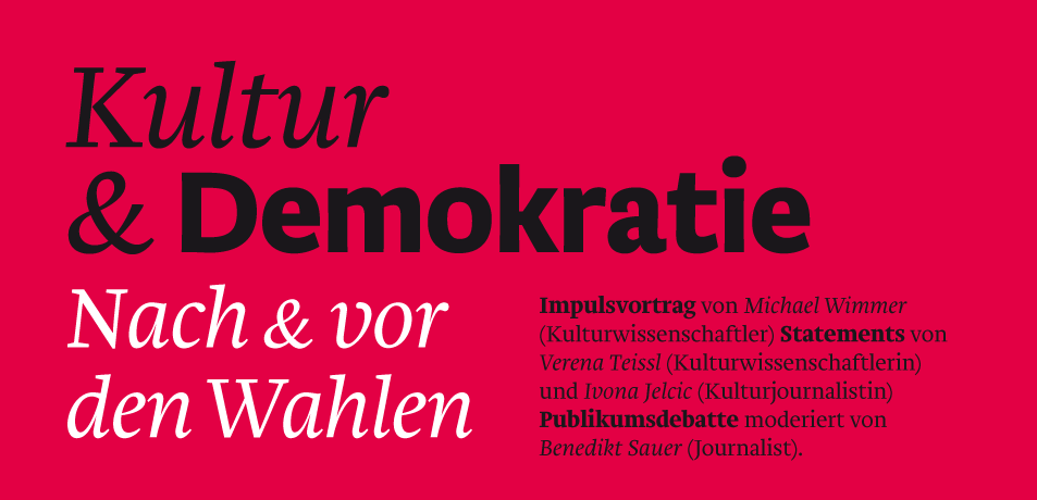 Kurz nach der Wahl des Nationalrats und vor den 2018 stattfindenden Wahlen des Tiroler Landtags und des Innsbrucker Gemeinderats widmet sich ein von zahlreichen Tiroler KulturveranstalterInnen und -initiativen gemeinsam veranstalteter Abend dem Thema „Kultur & Demokratie“.