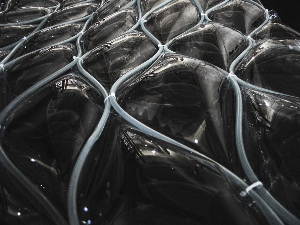 Mit der Ausstellung im aut wurde ihnen die Möglichkeit geboten, nicht nur autonome Arbeiten zu zeigen, sondern gemeinsam Objekte zu erarbeiten, die die Leistungsfähigkeit der jeweils spezifischen Materialien – der Pneu und das sogenannte splineTEX – verdeutlichen und das konstruktive wie gestalterische Potenzial aufzeigen, das in der Kombination dieser beiden "Werkstoffe" liegt.