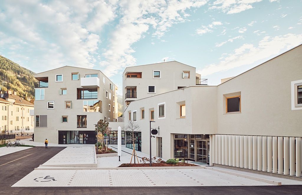 In drei, in ihrer Form und Größe in die gewachsene Struktur eingefügten Baukörpern sind u. a. 55 Wohnungen, mehrere Dienstleister aus dem Gesundheitsbereich und ein Café untergebracht. Die neuen Bauteile mit ihren unterschiedlichen haptischen Putzstrukturen sind so platziert, dass neue Blickachsen zum Schloss Freundsberg und zum Franziskanerkloster entstehen. Jeder Baukörper, jede Wohnung, jedes Büro und jede Ordination sind einzigartig, haben andere Blickbezüge und Lichtverhältnisse. Besonderes Augenmerk wurde auf die fußläufige Durchwegung des durch seine gemischten Nutzungen und öffentlichen Funktionen belebten Areals in Form von Querverbindungen gelegt.