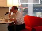 denn seit fast einem jahr trage ich den gedanken mit mir herum, mich zu outen, meine überlegungen und gedanken zum forum nicht nur in rahmen von weinseeligen einzelgesprächen an den bekannten tischen des centrals oder neuerdings des solo vino in die runde zu werfen, sondern öffentlich zur diskussion zu stellen. aber immer wieder siegte die faulheit oder die inkonsequenz. und dann kam diese rote couch, jenes fast schon aufdringlich symbolische teil von jasper morrison, das mich zum benutzen reizte. in gewissem sinne strahlt diese ausstellung für mich jene atmosphäre aus, die ich immer als metaphorische zielformulierung für das forum anstrebte, nämlich jene wohnzimmerstimmung aufkommen zu lassen, die mir heute als hintergrund für meine erzählung ideal erscheint. aber zurück zur analyse und zur roten couch. als gelernter wiener sprang mein unbewusstes auf diese metapher an, hemmungen fielen und heraus kam die erste direkte einladung von mir an euch und in folge eure anwesenheit und das darin ausgedrückte, vielleicht auch irritierte vertrauen, für das ich mich hiermit vorab bedanke.